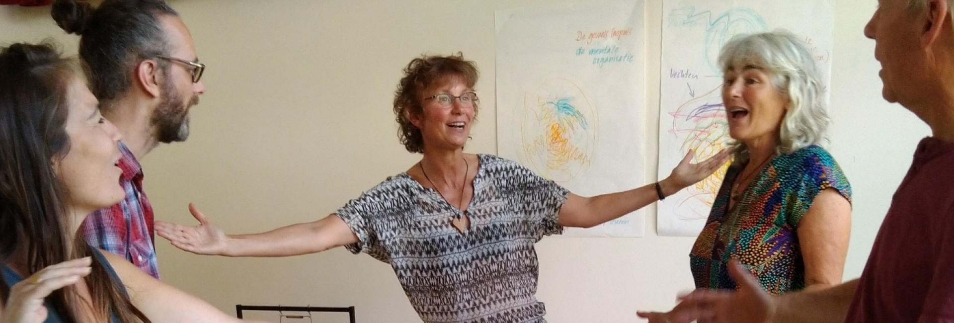 We beginnen met specifieke lichaamsbeweging omdat je dan meer voelt, meer waarneemt in je lichaam en jij je makkelijker uit. Dan gaan we klinken, altijd vrije geïmproviseerde klanken. We klinken eerst lichamelijk: zo voel je dat je romp een klankkast is. Er zijn veel vormen van klinken: melodisch, ritmisch, rauw, uitend in de wereld, helend in jezelf. De ene keer vrije expressie, de andere keer juist in afstemming met elkaar. Jouw klank te midden van alle klanken met de groep als getuigen. iedere avond heeft verschillende werk vormen , die allen hun eigen kwaliteit hebben en een ander aspect van jou aanraken.
